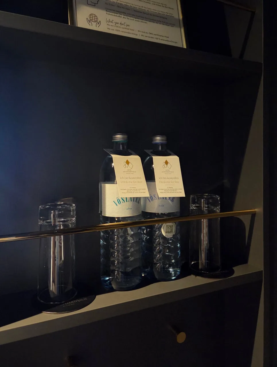 Right by the entrance, there were bottles of still water and sparkling water