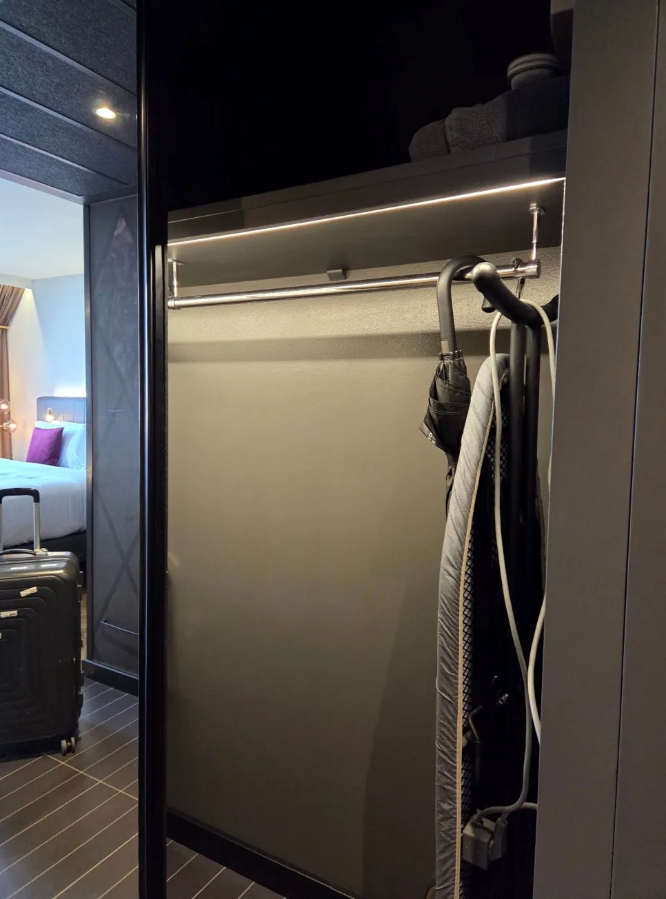 It had plenty of hangers, plus an iron set, luggage rack,