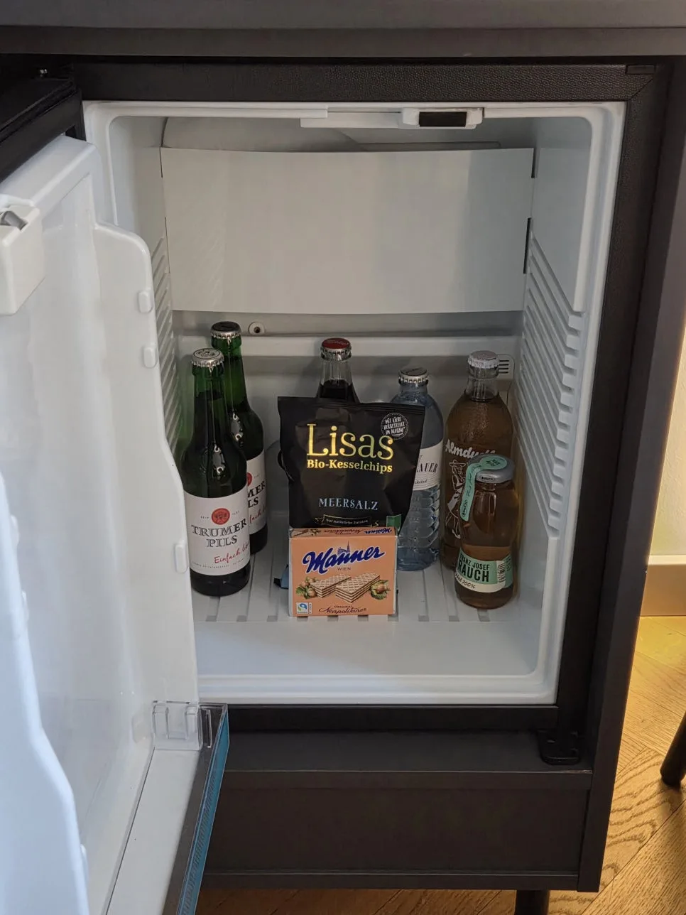 The minibar setup was pretty standard for a hotel: