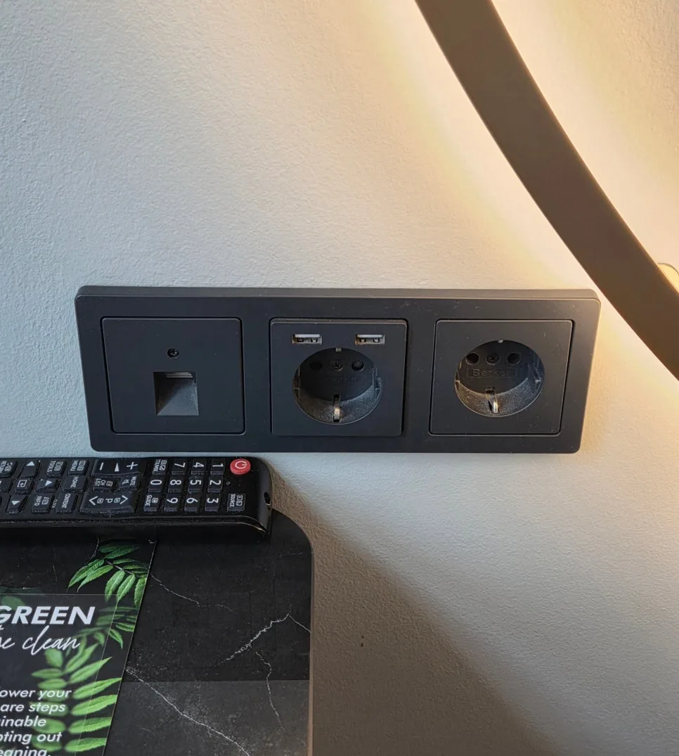 by the desk, on the walls, and next to the bed—so it was very convenient.