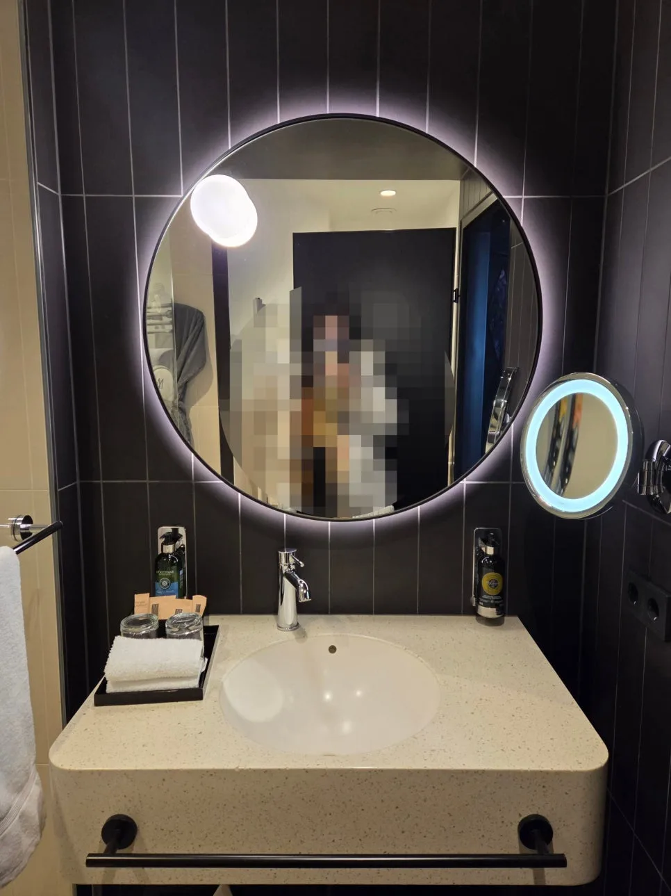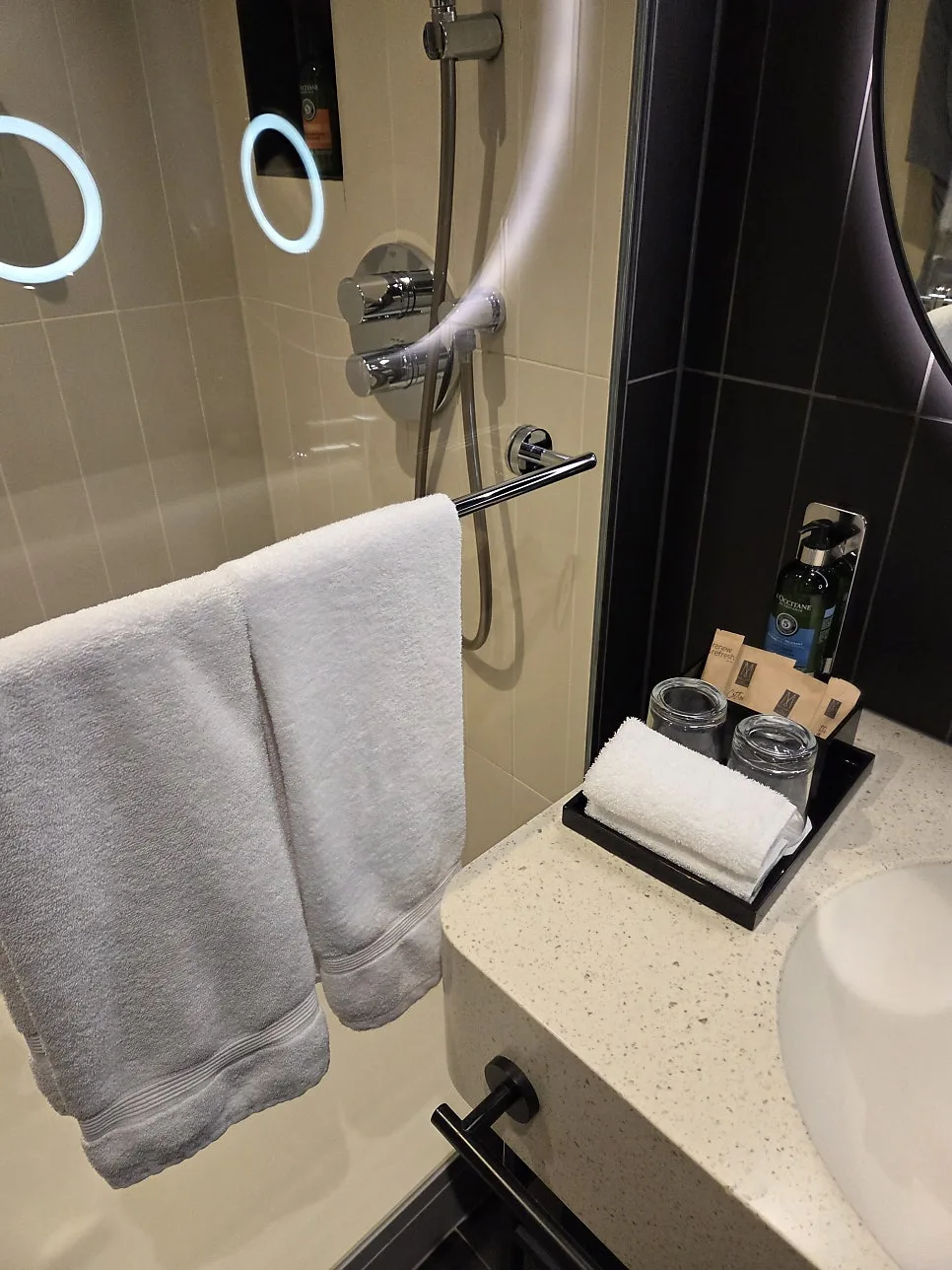 and all the amenities were provided in refillable containers using L’Occitane products.