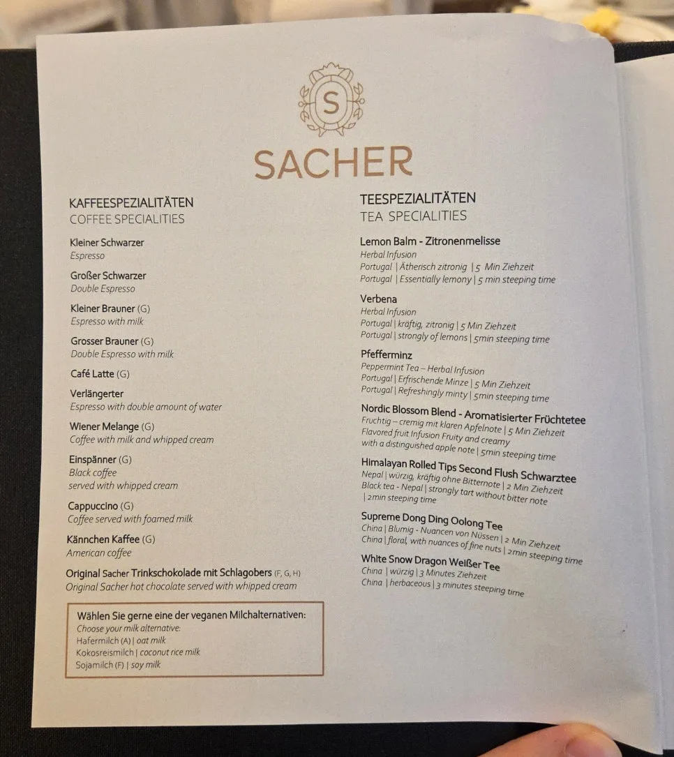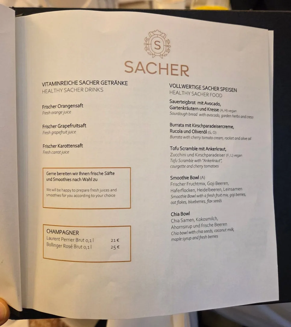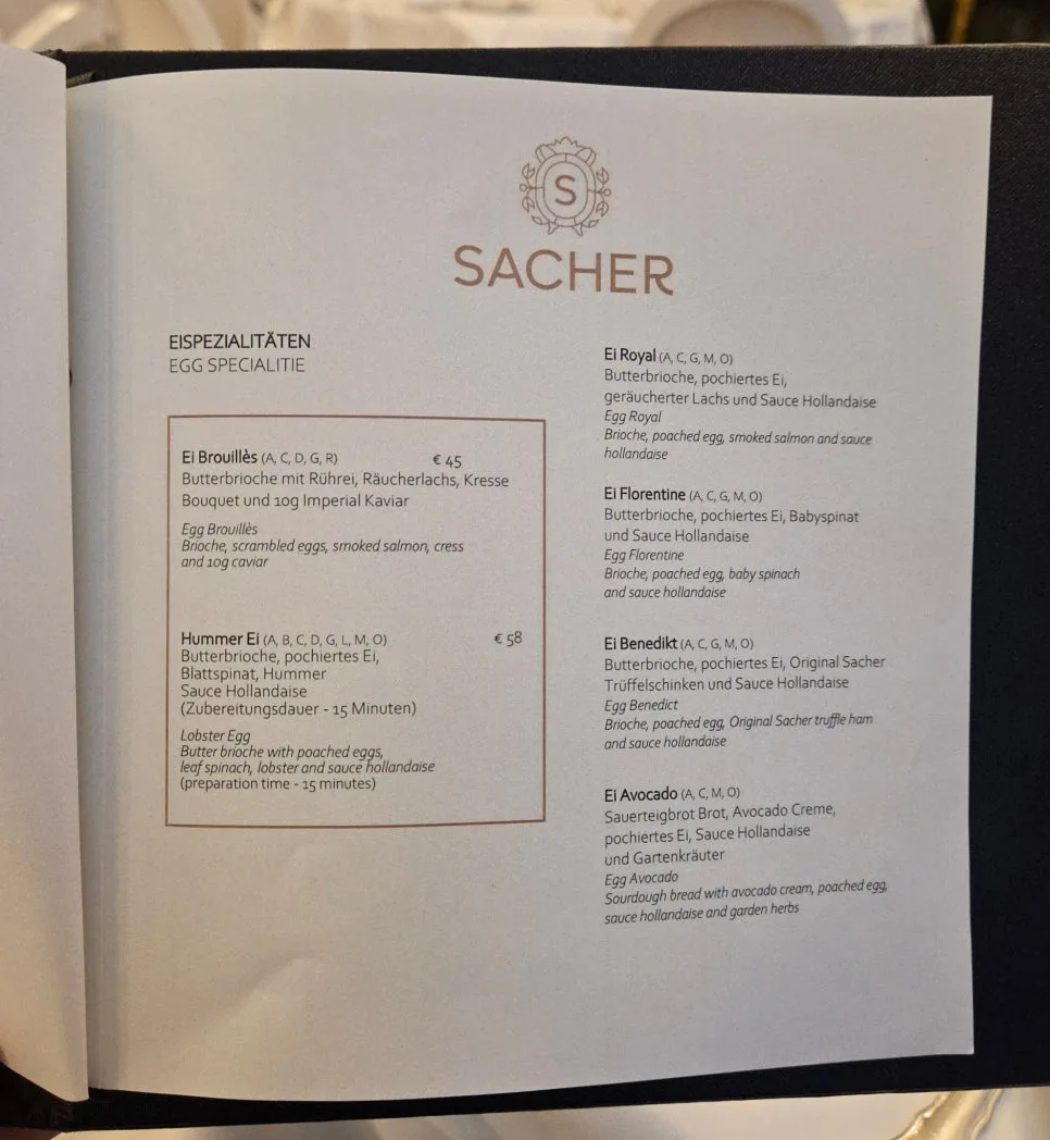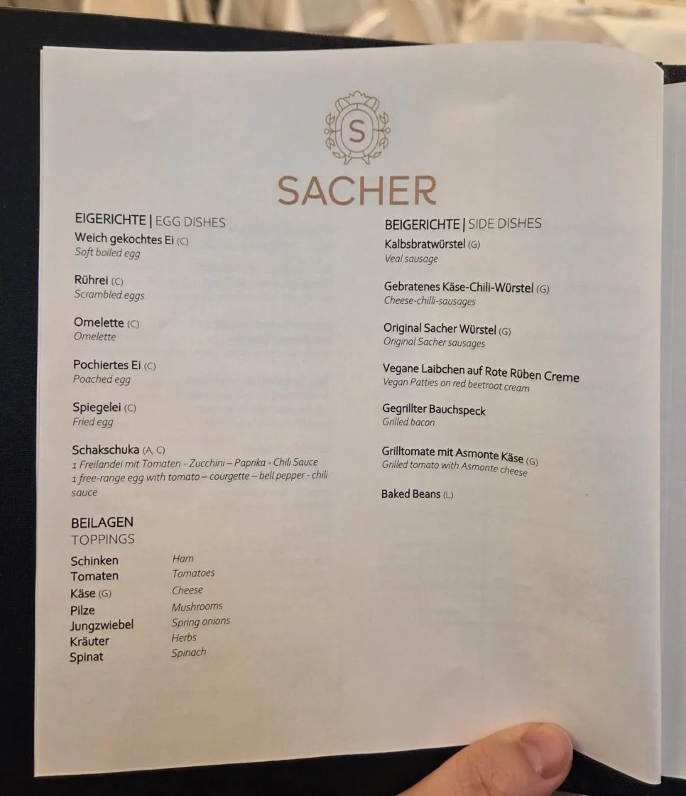 the real highlight of breakfast at Hotel Sacher was the made-to-order menu.
