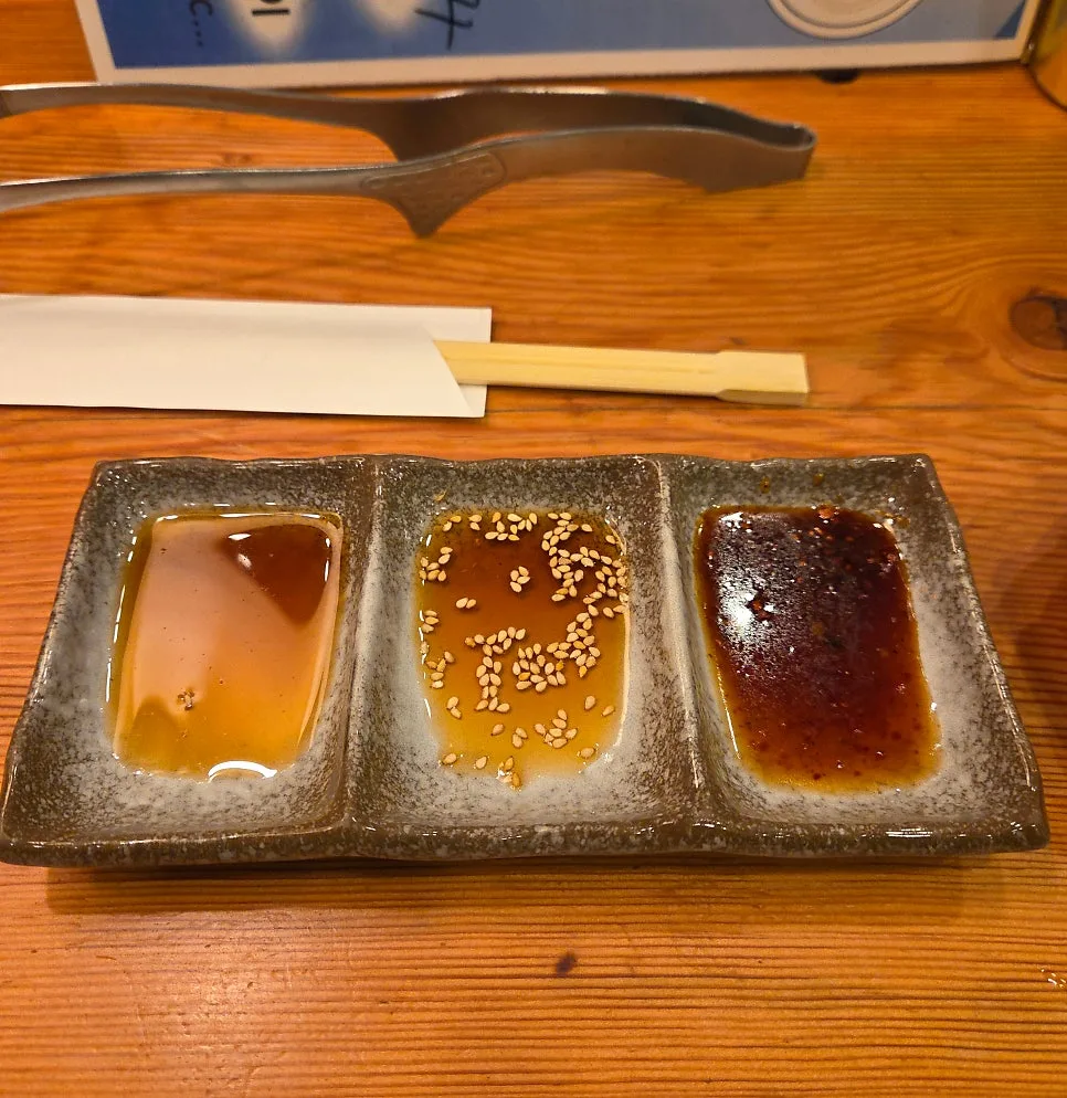 Just like the menu says, from left to right it goes: a slightly sweet sauce,
