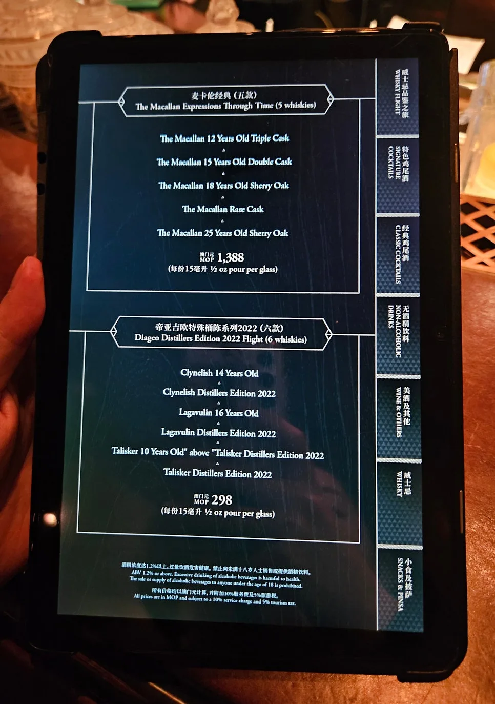 We stopped by this Macau whisky bar for my husband, who loves whisky.