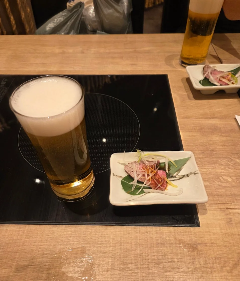 2 small draft beers, and 1 napa cabbage kimchi.