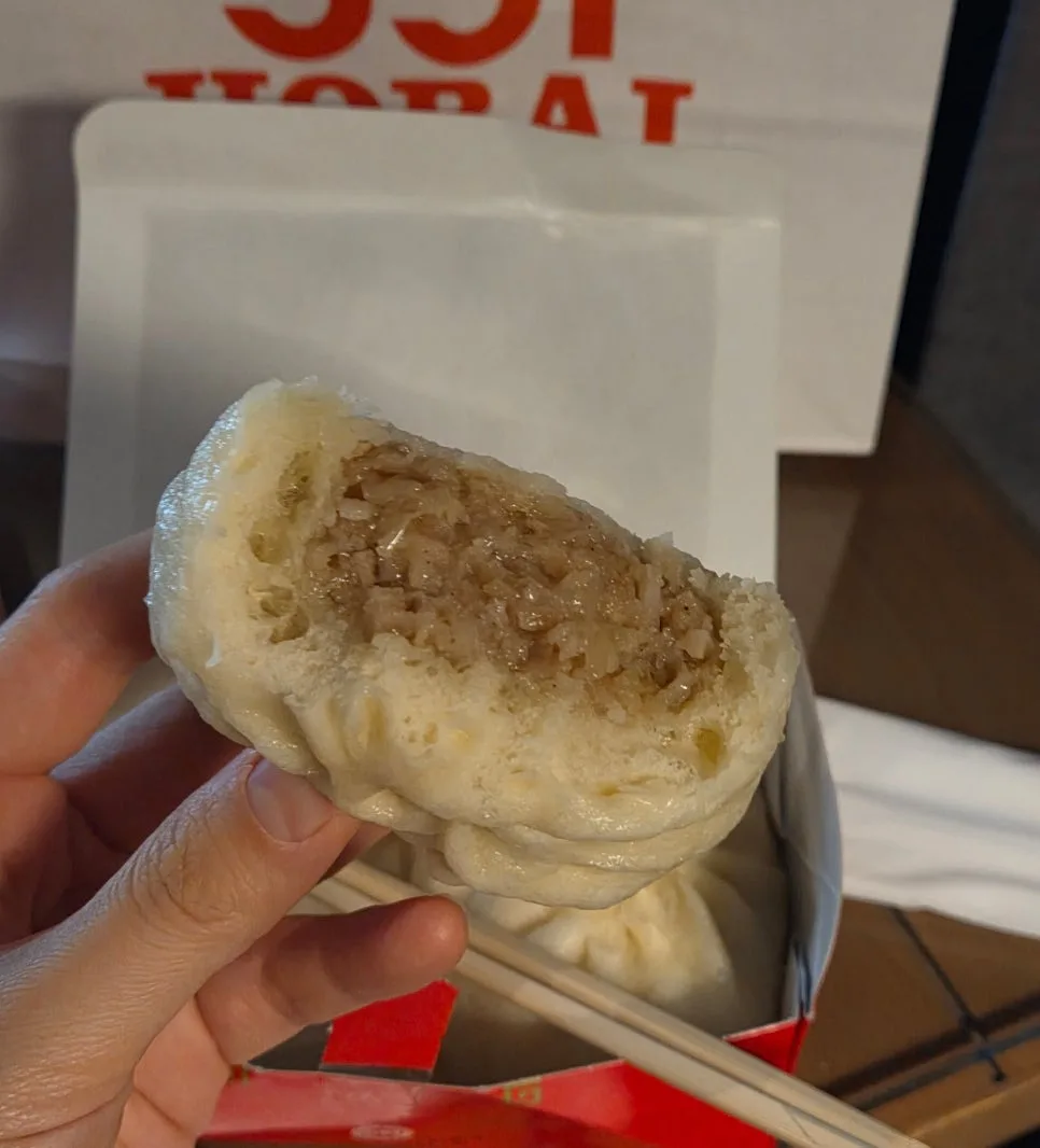 I don’t usually gravitate toward buns with a thicker, bread-like wrapper, but 551 Horai is so famous that I had to try it at least once, so I ordered two.