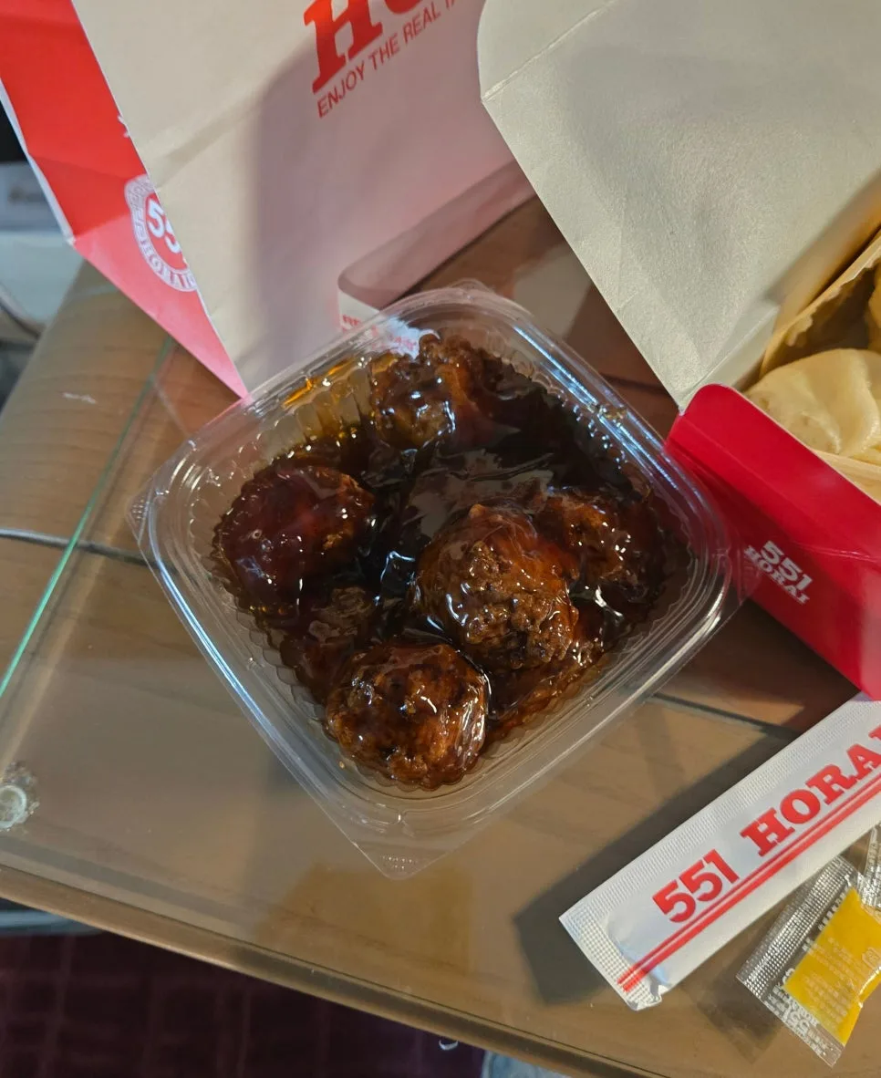 The meatballs themselves were meaty and decent, but the sauce leaned pretty vinegary and sweet-and-sour. Personally, this one wasn’t for me. I ate it cold, and I suspect it would have been better reheated in the microwave.