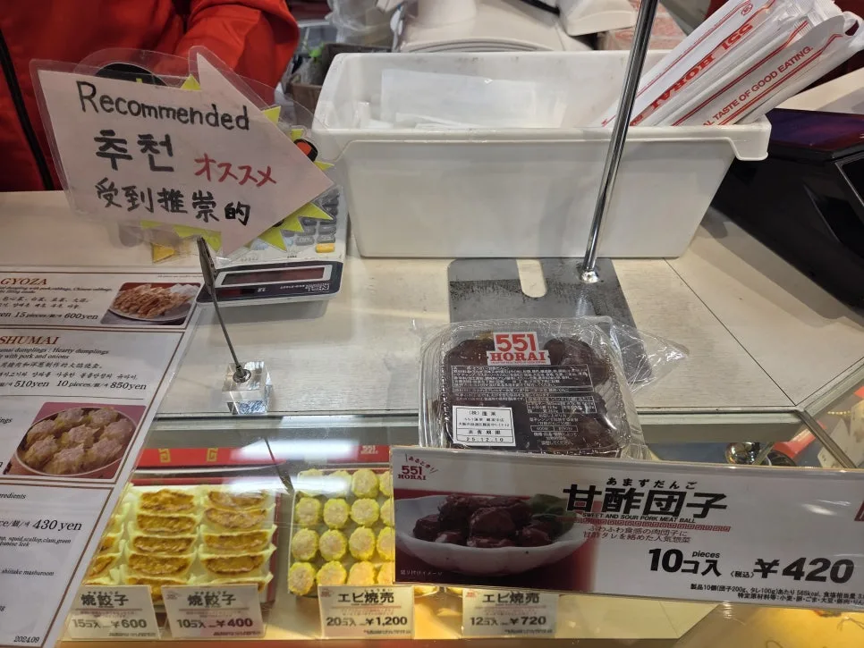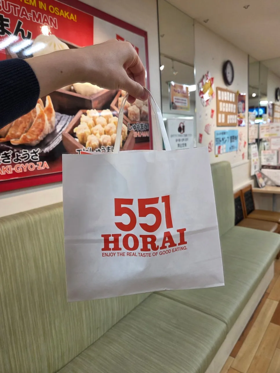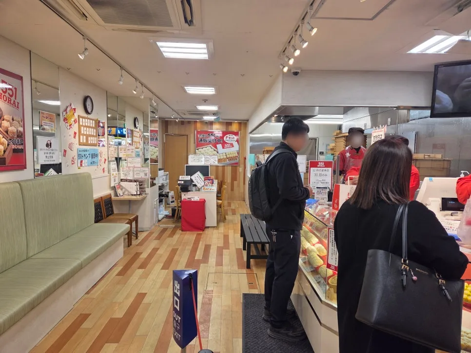 What I liked most about this branch was the timing. I usually skip 551 Horai when I see the huge lines at the Dotonbori location, but when I came here around 7 p.m., there was barely any wait. Only two people were ahead of me.