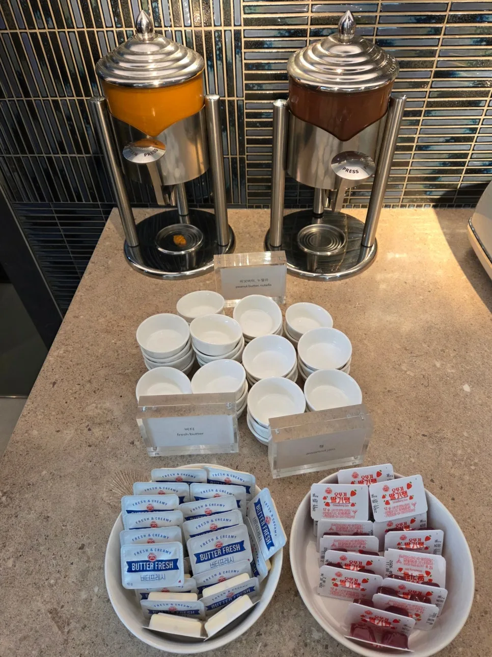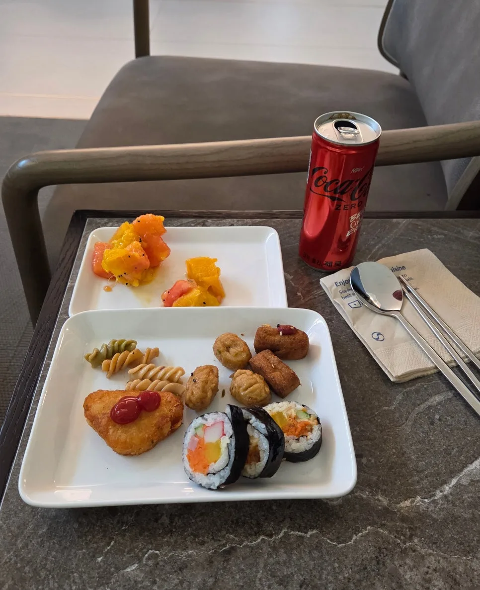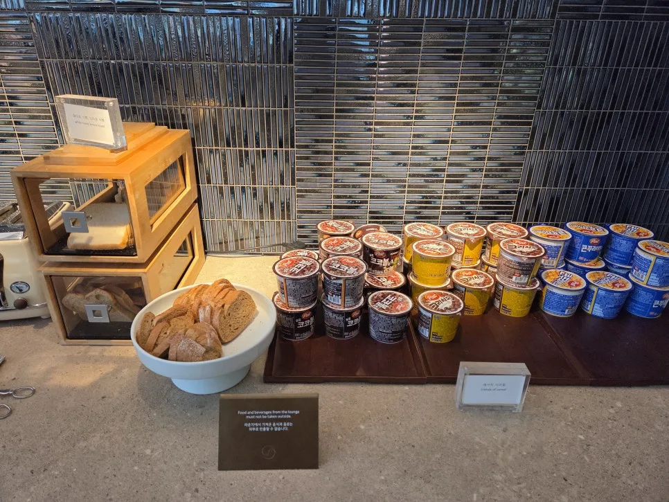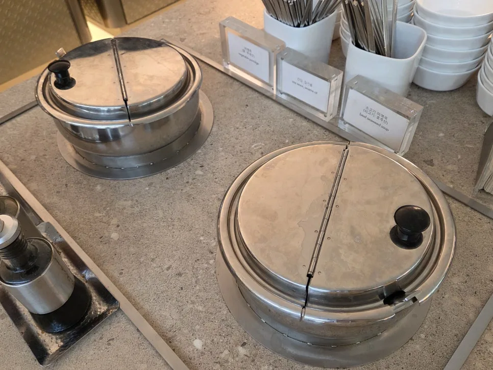 東側ラウンジにはありません。その代わり、あちらにはチャンチククス(韓国の温かいにゅうめん風スープ麺)があります。