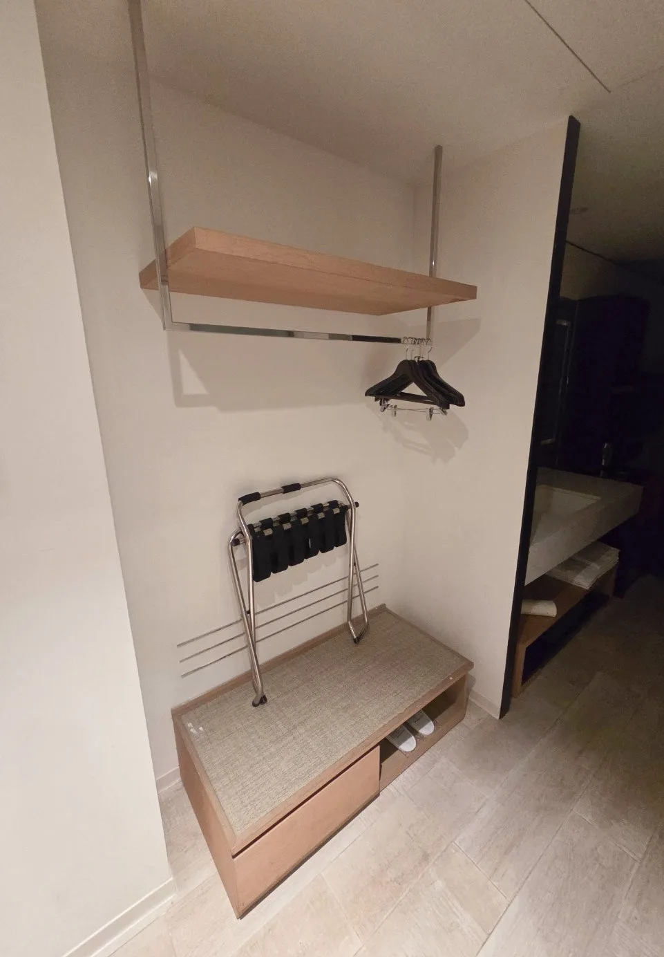 ベーシックな客室でも、スーツケースを広げたままにしても