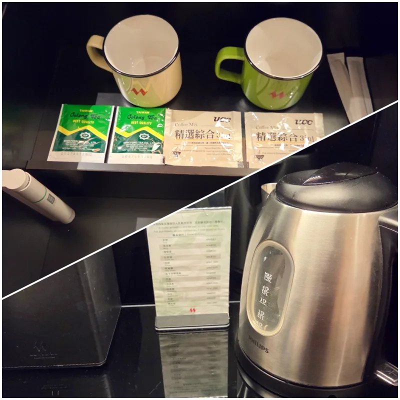 客室のミニバーには、簡単なお茶やコーヒー、