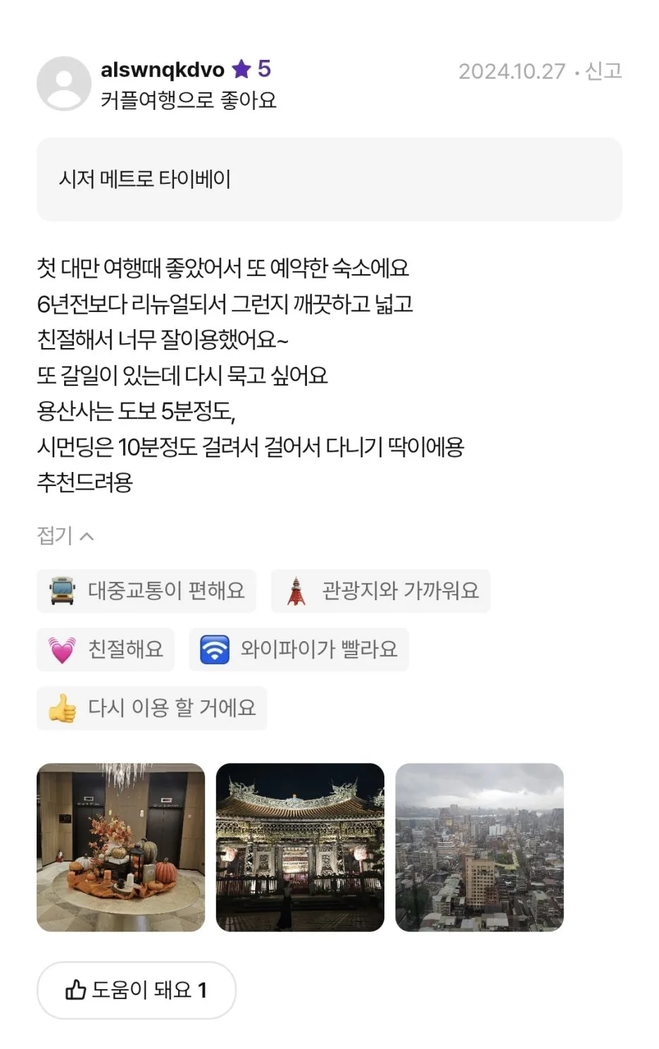 前回の台北旅行で実際に泊まってみて、