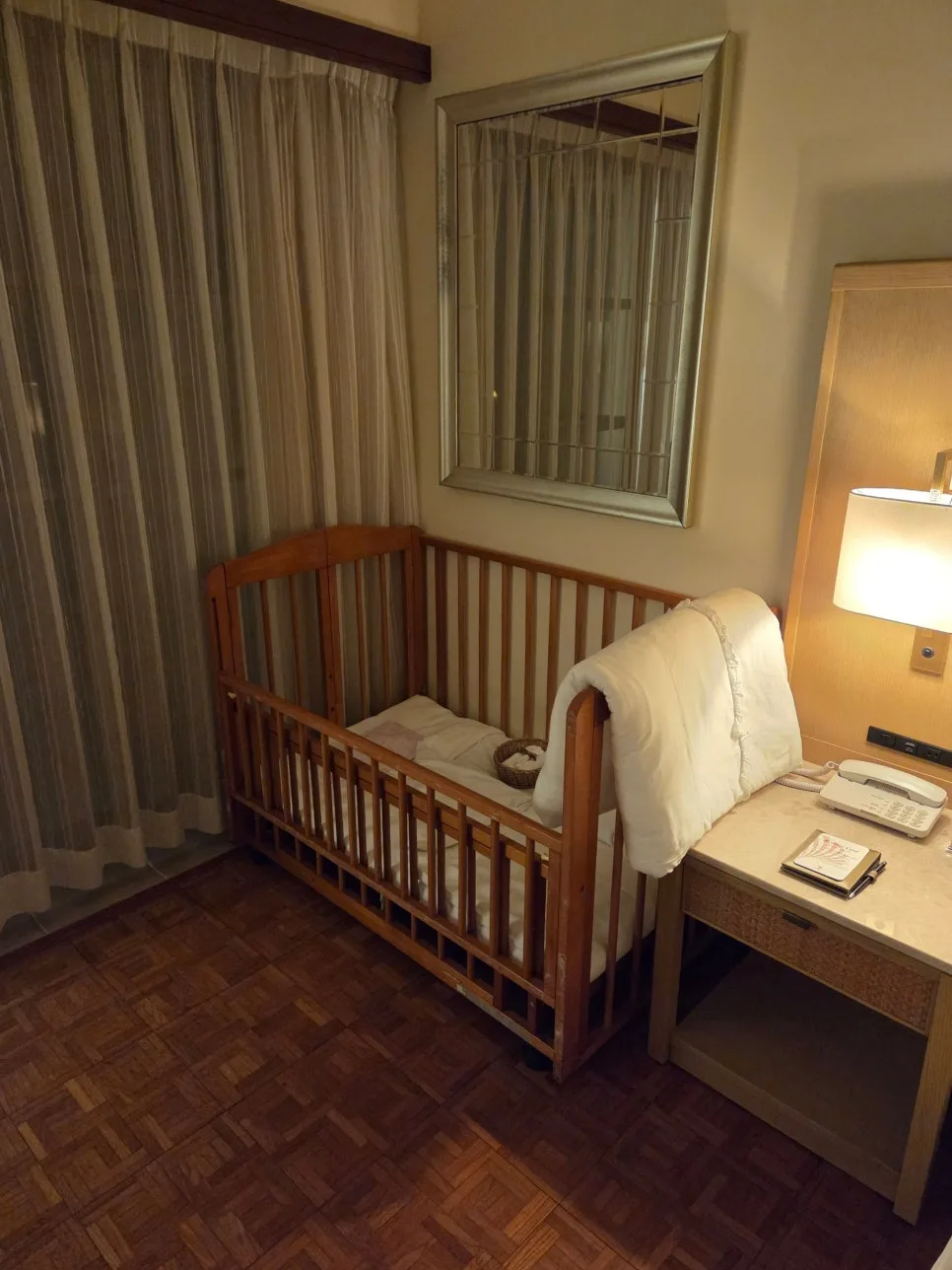 飯店會提供嬰兒寢具和木製嬰兒床,
