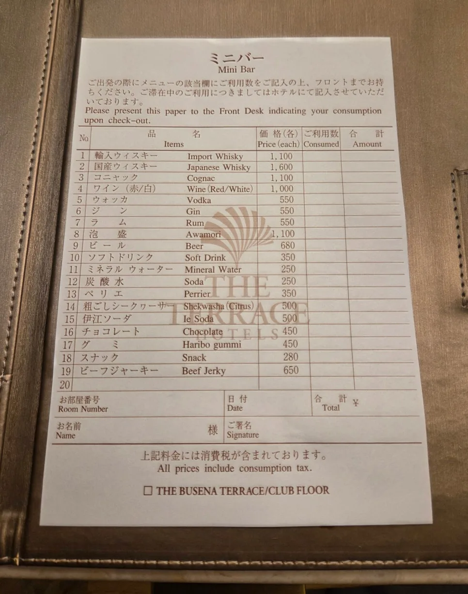 mini bar 價格可以參考上面的價目表。
