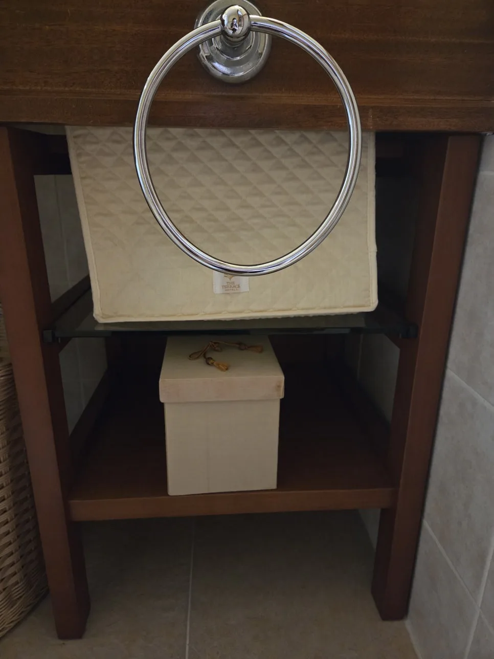 都收在洗手台下方的層架裡。