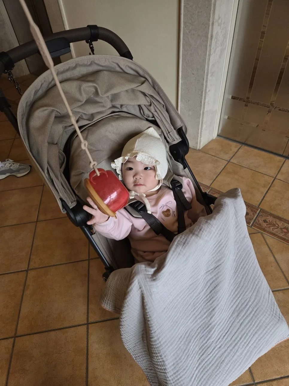 10 個月大的寶寶一臉還在狀況外。