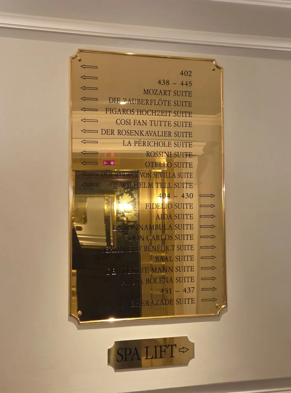 套房分级从Small Suite、Junior Suite、Signature Suite、Terrace Suite、Signature Suite、Grand Suite、Opera Penthouse到Madame Butterfly,