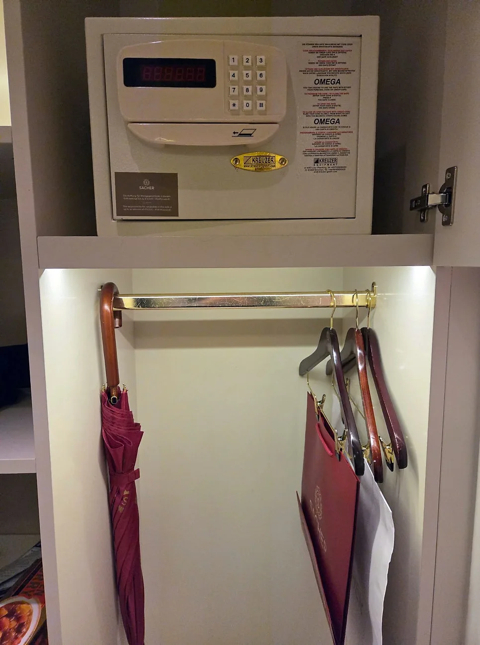 里面有保险箱、雨伞、纸袋、洗衣袋,